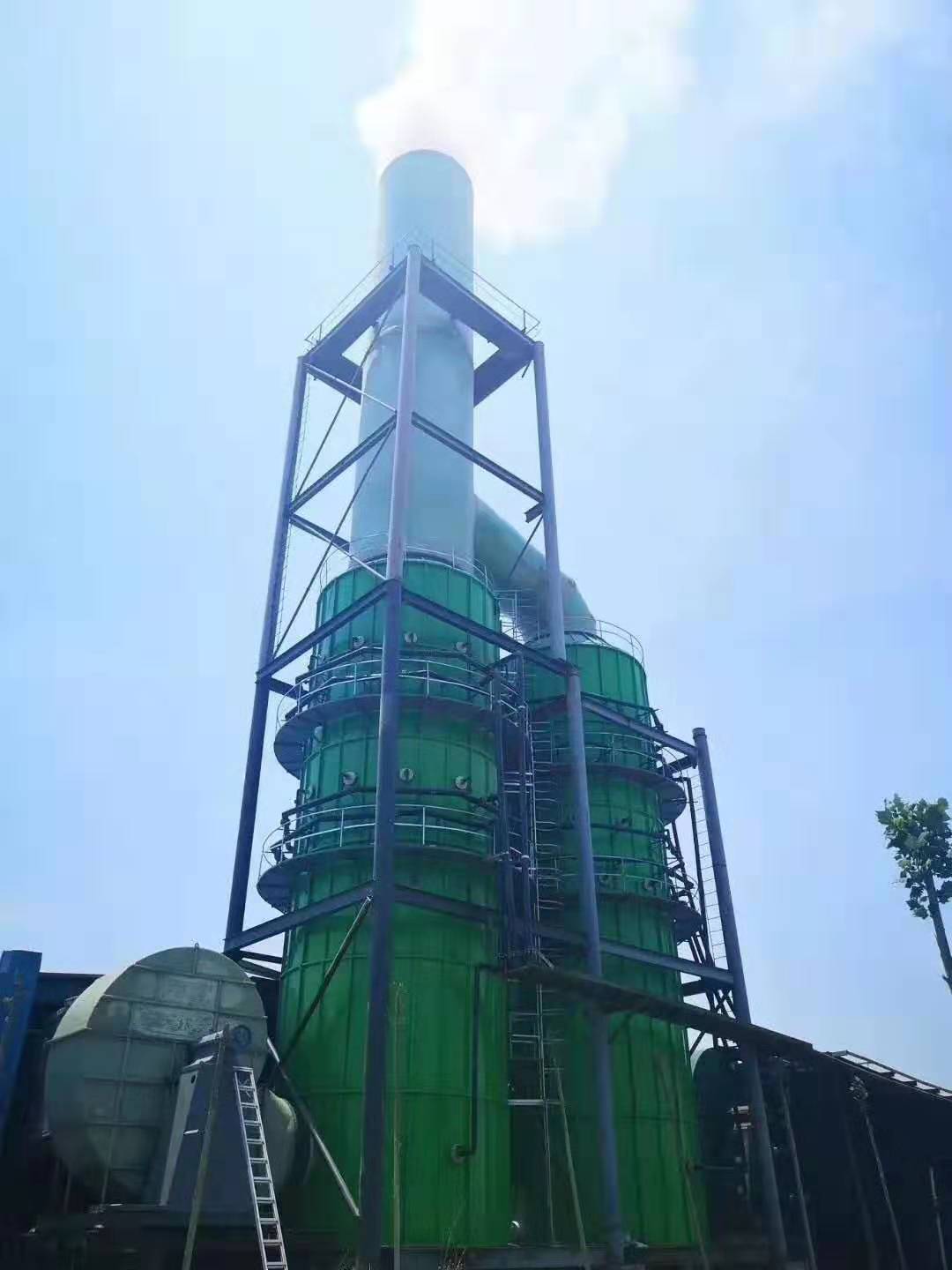 具有这种优越性的酸雾净化塔,它是一种由环形二缸和双缸结构组成的。为提高抗压强度,塔筒采用了大量的垂直加劲肋。根据各种型号和规格规格,对外壳进行分段组装。机器外壳采用镀塑碳钢地脚螺栓组装。